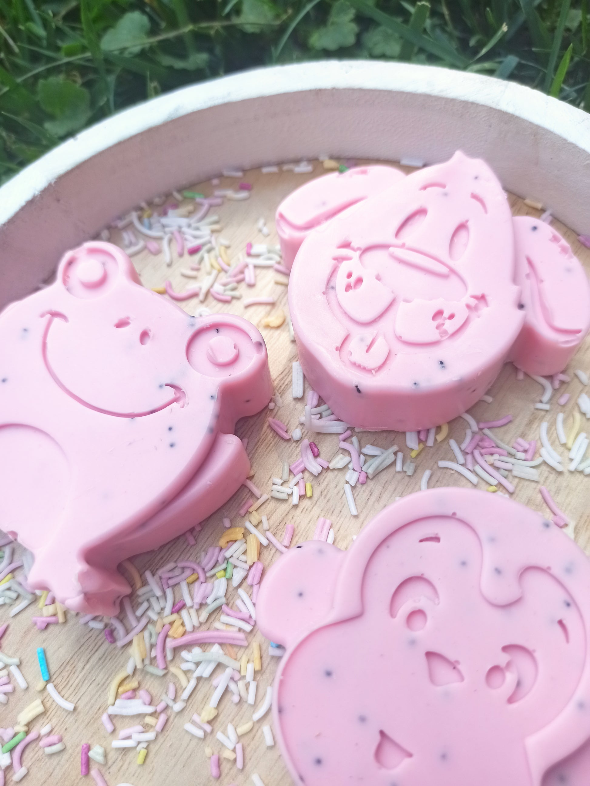 A rózsaszín pettyes kutyus, béka és majom biztosan mosolyt csal a gyerekek arcára még a durcás "nemakarokfürdeni" estéken is. 😉